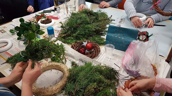 Veseli decemberso udeleženci pričeli z izdelovanjem adventnih venčkov, kjer so urili svojo kreativnost, umetniško žilico ter ročne spretnosti. Širili smo dobro voljo, optimizem ter praznično razpoloženje.