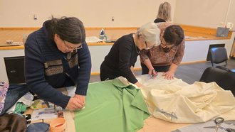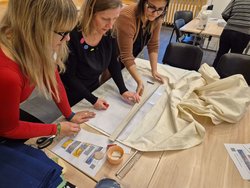 Druga delavnica je bila usmerjena v praktično izvajanje načel krožnega gospodarstva skozi reciklažo tekstila. Ob strokovni podpori profesionalnih krojačic so udeleženci poglobili znanje krojenja, sestavljanja krojnih delov in natančnega šivanja.