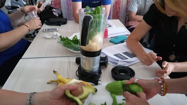 Kako zdravo shujšati? O tem je udeležencem spregovorila Ana Dobnik, mag. klinične dietetike. Predstavila je 5 ključnih metod, ki lahko pri tem pomagajo. Tako so na primer izvedeli, da lahko veliko naredimo že s pravilno kombinacijo živil. Preizkusili so se tudi v pripravi zdravih smoothijev.