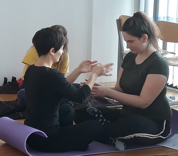 V današnjem hitrem tempu je nujno najti načine, kako se spopasti z vsakodnevnim stresom. Z udeleženci smo spregovorili o stresu, ki ga doživimo ob izgubi zaposlitve in o pritiskih, ki nas čakajo na delovnem mestu. Učinkovita tehnika za lažje soočanje s stresom je nedvomna tudi joga. Naredili smo nekaj asan za krepitev posameznih energetskih centrov/čaker in "pozdrav soncu", skop med seboj povezanih asan, ki blagodejno vplivajo na naše celo telo.